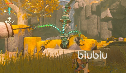到达伊恩伊萨神殿后,终极之手的第二个作用就是制造多余的材料,也就是所谓的“合成”,它可以把一件东西和武器、盾牌结合在一起,形成一把新的武器,合成出来的东西可以被分解,但是分解出来的东西会消失。拿起那把锈迹斑斑的双手剑,用终极之手的剩余材料制造技能,对着石头就是一把巨大的石锤。按下“Y”键,就可以打开石门,摘下了右侧的火焰果实和木箭。点击“ZR”和“方向”,点击“烈焰果”,对着上面就可以射出火焰箭,箭矢落下,就是一个宝箱,打开就能拿到钥匙。用钥匙开门,前方有一只小怪,我们去把它干掉,然后继续前进就是伊恩伊萨神殿的副本了。