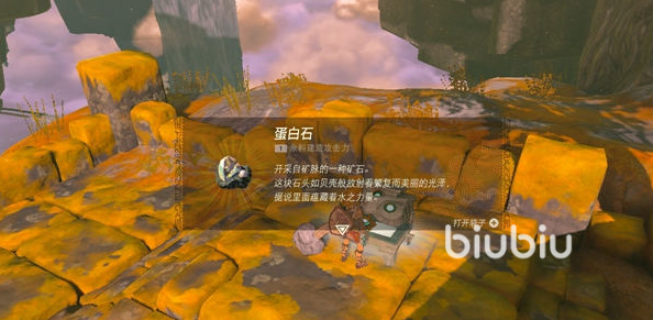 往前走一段路,就会有一只攀附在藤蔓上的怪物,它的名字叫‘魔犹伊’,玩家可以用箭矢将它射杀,就能拿到‘魔犹伊’的遗失物。打碎石头,可以得到一颗红色的宝石,也可以得到一件破烂的外套。出了山洞,就能见到那个木匠魔像,会向我们解释这个仪器的原理,让我们做一个木筏。走到右边的尽头,有很多的石柱,我们可以建造一座桥,穿过这座桥,击杀这个怪物后把石柱搬到这里来,就可以拿到琥珀了。