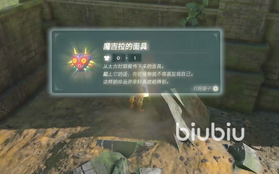这个道具就是魔吉拉面具,早在2000年的时候,任天堂公司就发布了与其相关的制作,后面还在09年重更新了,并且主角获得之后佩戴上,可以获得非常厉害的能力,算是一个增益比较高的物品。
