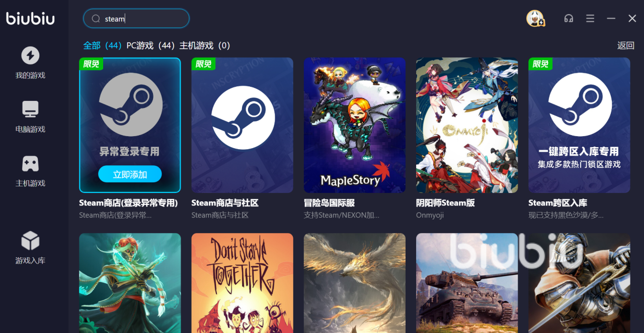 现在国内加速器也非常多,biubiu加速器比较靠谱,能够对steam平台进行指定加速,也就是说,我们在国内登录这个平台的时候,会为我们提供专线网速。大家在下载安装好这款加速器之后,直接搜索就可以找到steam平台,并且大家可以看到目前可以免费使用加速的。
