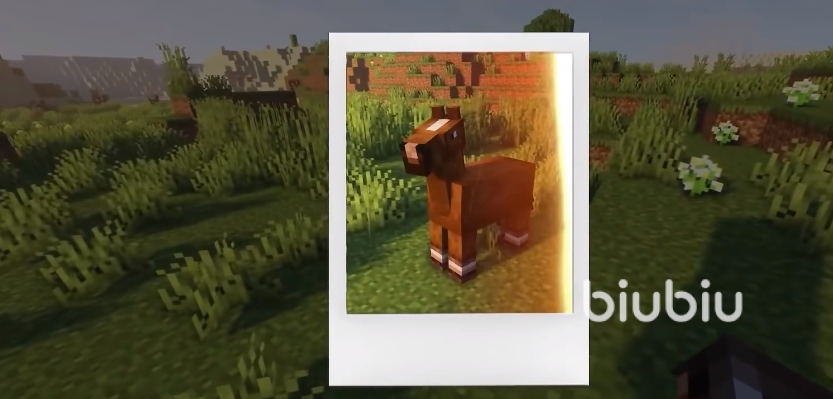宝丽来资源包,玩家可以将雕刻南瓜放在头上,切换到第一视角,可以看到中间有一个相框,按下F2可以截图。可以用来记录游戏中美好或者有趣的事物。