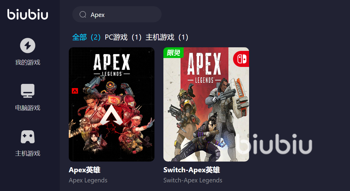 目前,这款游戏已经开通了七个区服,但是还没有开通国服,所以我们在游戏的时候需要连接到外地的服务器,并且在游戏的过程中,很有可能会匹配到其他国家的玩家。想要更加优质的进行团队配合和游戏体验,大家通过别别加速器中直接搜索apex英雄,就可以找到这款游戏。大家可以发现,目前这款游戏还支持在switch主机端进行,大家如果有主机端游戏需求,都可以使用biubiu加速器进行提速。