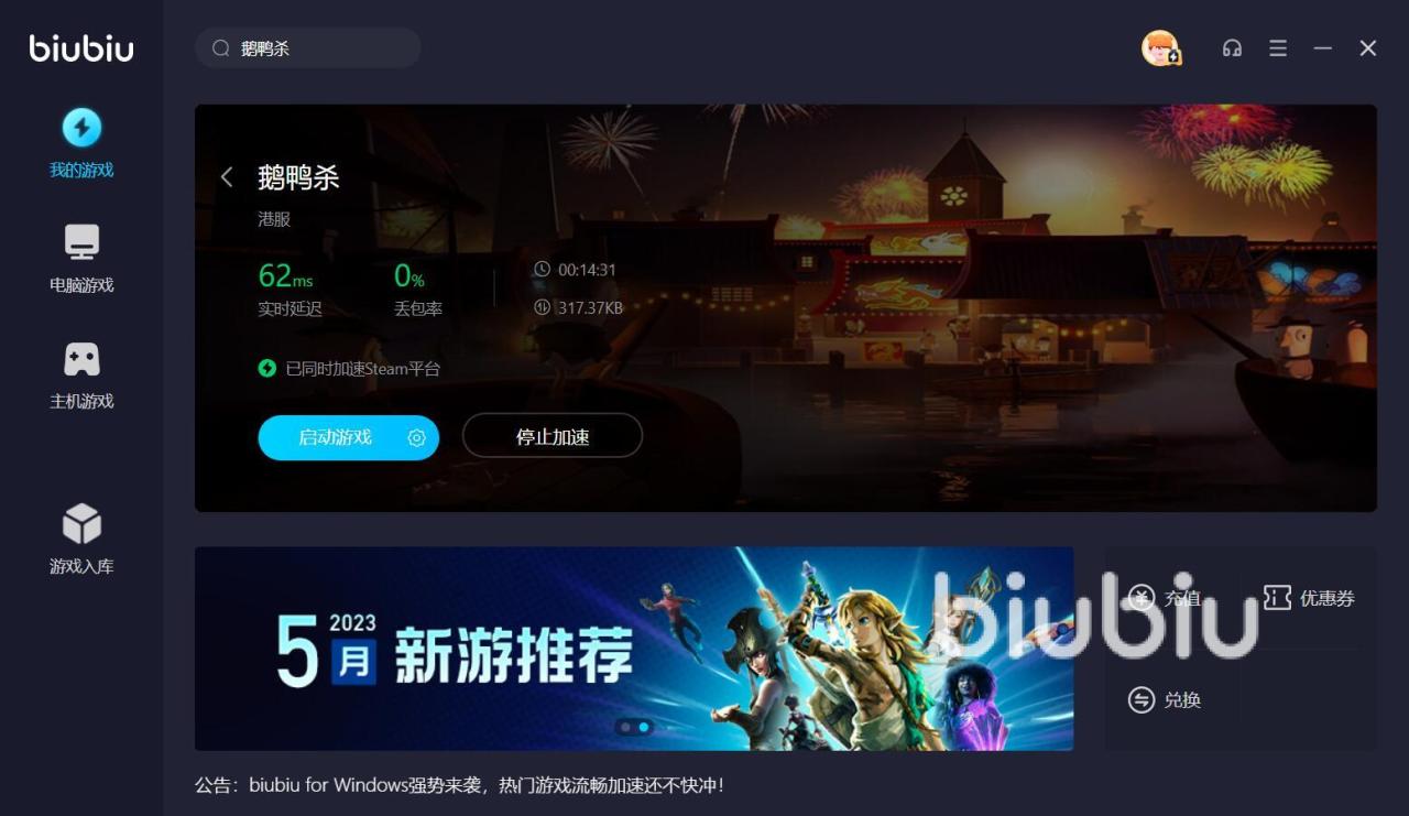 以上就是steam玩鹅鸭杀需要加速器吗,无论你是从什么地方下载的游戏,经过网络优化之后,实际的体验状况,都会更上一层楼,如果你没用过类似产品,不知道该选择哪一款加速软件,那么可以尝试一下biubiu加速器。