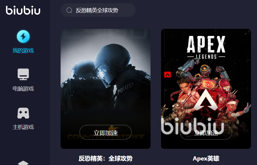 爱玩游戏的小伙伴可能对于游戏内容或是数量的要求比较高,因为加速器需要多方面满足,就像服务器一样,可能是港服的,或是国服的,等等其他情况。在biubiu加速器上电脑游戏中可以找热门的或是限免的,新出的多款游戏,其他的主机游戏也包含在内,用户看到游戏左上角的限免的话就可以放心免费体验了。在游戏库内找喜欢的游戏,换着玩,相信玩很久都能保持新鲜感。能够保证玩家们的加速体验没问题,游戏板块也是丰富起大家的日常了。