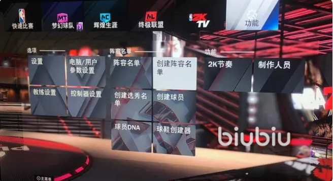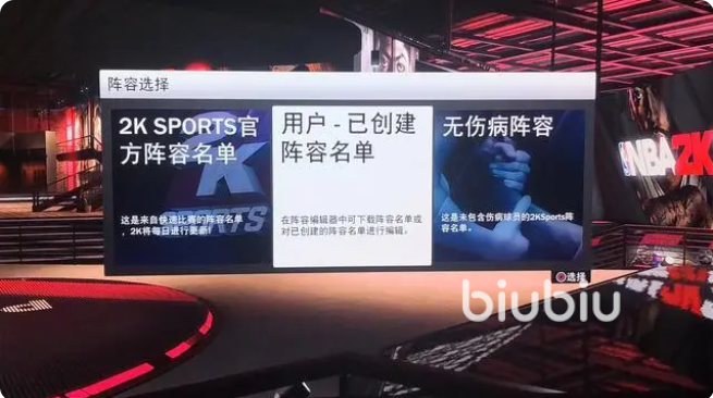 因为2K20的版权问题,有些球员,我们无法直接在游戏中进行使用,阿泰斯特就是其中之一。那么,这些球员我们就无法使用了嘛,当然不是。首先,我们进入游戏,可以选中游戏的功能栏。然后,在功能栏中,选择以创建阵容名单。在游戏的默认创建栏中,我们已经可以看到一些,官方推荐的自制名单。