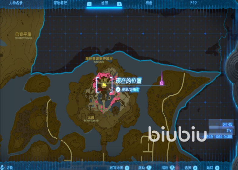 这是一把贯穿历代的知名弓箭,这一作在天空地区海拉鲁城堡的一根柱子上可以看到,具体在地图的什么地方小编已经帮大家在图片标出,上线显示的“现在的位置”就是获取地点,所以可以擦亮眼睛自己找一下,想要到这个地方也很简单你可以通过剧情来解锁究极手,然后用这个技能直接造一个喷气式飞机飞上去,如果觉得有点复杂换成热气球也行,不过需要用手动点火启动而且速度也比较慢。