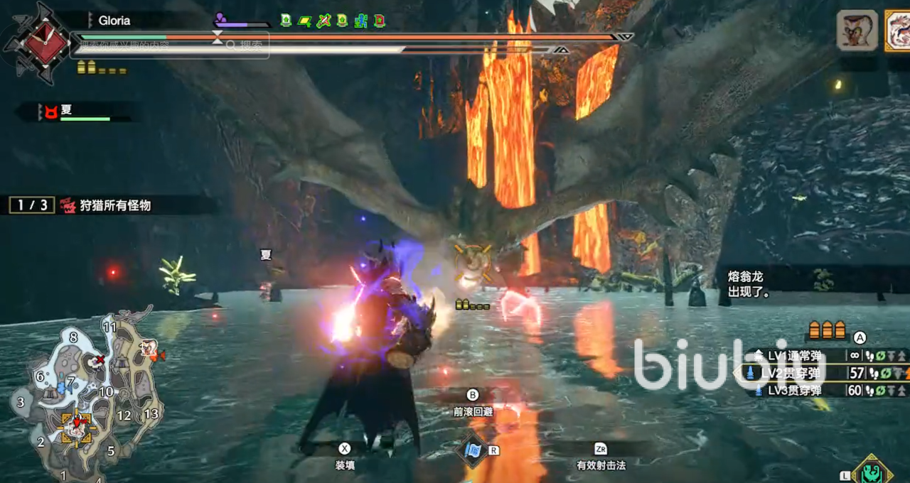 在怪物猎人崛起这款游戏的资料片曙光里面我们在攻击黑蚀龙、混沌黑蚀龙、天迴龙、熔翁龙的时候,如果我们被怪物的攻击命中了,那么我们会增加一个状态数量表 ,并且这个状态会有数值的增长。当我们让这个状态表中的数量达到最大化的时候,我们就会进入到一个新的状态那就是狂龙化状态。