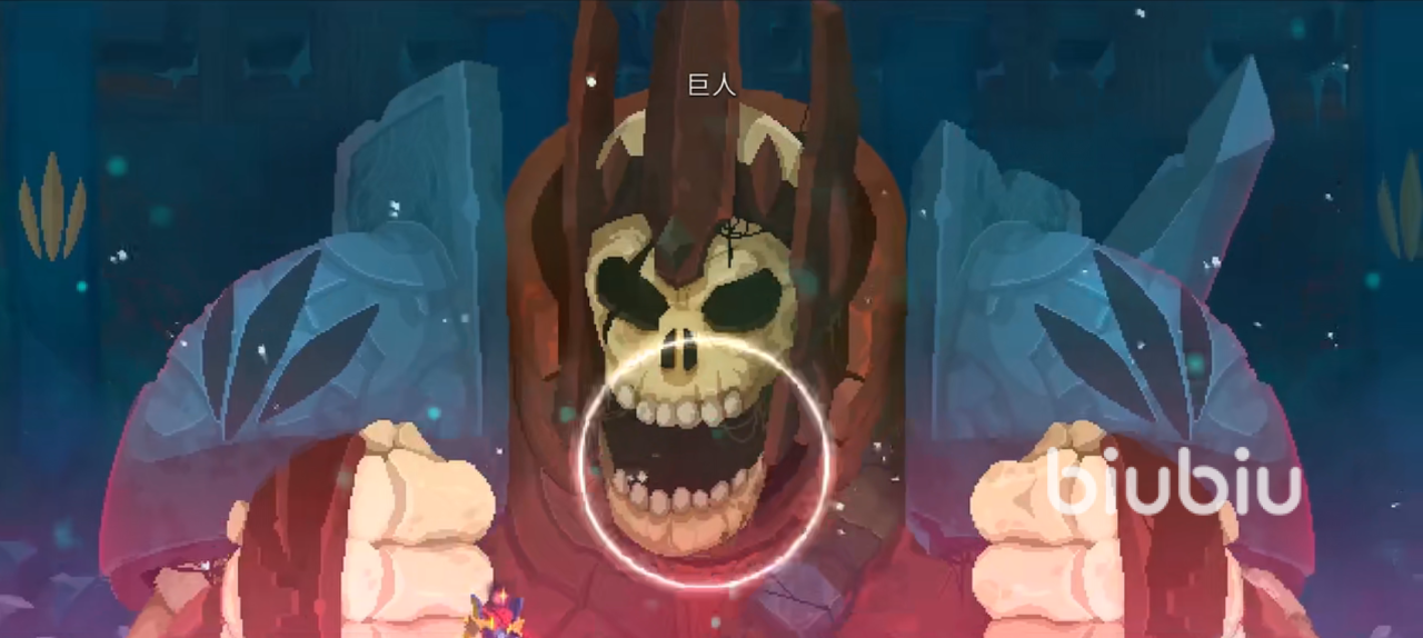 开启大门后我们一直往右边前进就可以到达最终的地点,期间如果遇到怪物打不过可以通过多走一段其他方向的位置,来加强下自己。总的来说,山洞地图在打开大门之后的线路还是挺简单的,一路向直冲最后遇到巨人的时候,直接利用跳跃躲避攻击并疯狂击打巨人的眼睛就可以轻松通关了。祝大家游戏愉快!