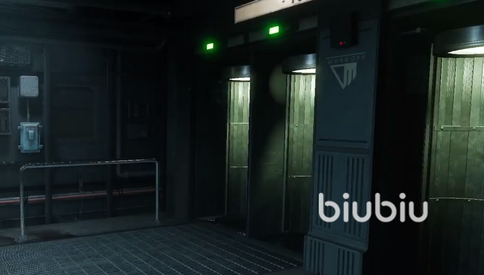 到达这里之后需要将面前的卷连门抬起进入,进入之后将游戏中的夜视仪第一时间打开,需要注意在这个地图里面是会有地雷陷阱的,需要时刻的注意地面,然后在前进的过程中如果听到任何的声音一定要第一时间进行躲避,因为这个时候就是提示玩家有怪物出现了。在这里地图里面需要玩家修好两个电机就可以完成任务了。