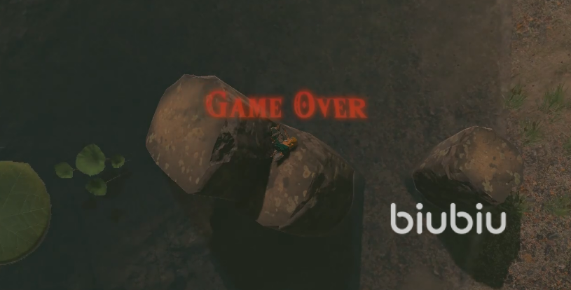 纵身一跃屏幕上会提示你,用手柄侧面的右键,可以开启加速俯冲,但这按不按无所谓你可以仔细观察一下地面会有一个水塘,只要跳到水里就可以成功完成挑战。但也不要大意,很多石头会在上面,如果你不慎撞到上面,会直接判定死亡。然后会在上一个保存点进行重开,所以可不要在这里失误哦。