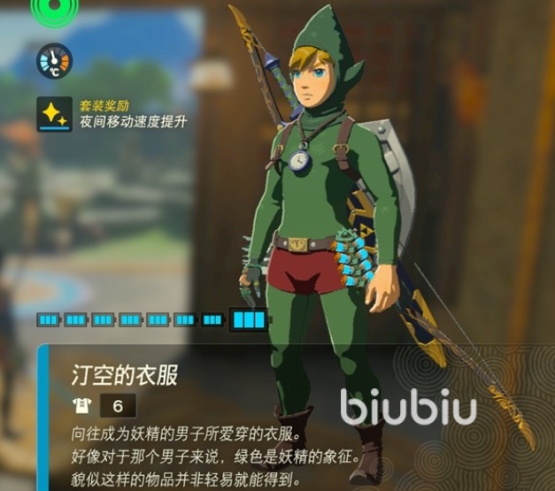 接下来说的这个系列可能在攻击防御属性上面没有什么出色表现,但其增加夜间移动速度的设定,在特殊场合还是能够起到不小的作用的。这就是汀空系列,因为衣服的主人向往成为妖精,所以整体外观都是绿色的,穿上看着有点滑稽。在拿鬼神大剑的洞窟那里有两个NPC,跟他们交谈就可以获得线索,然后去接取挑战任务就能够拿到这套服装了。