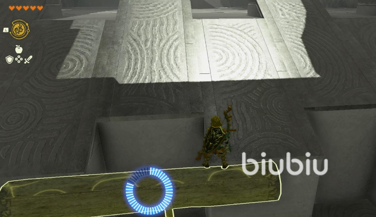 不过好在制作方赋予了主角余料建造的功能,加上究极手可以隔空抓取物品。将三个原木通过技能抓取粘合在一起,就可以拼成一个木筏,然后再放置到水中。接着跳上去然后使用倒转乾坤的能力,就可以来到上层平台。