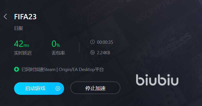 由于fifa23是国外某公司制作的游戏,目前也没有国服,在游戏中常常遇到卡顿情况,界面加载也比较缓慢,这样的培养过程以及球赛观感效果可能会受到影响,那么大家就可以用biubiu加速器来优化网络环境,使用顺序是先启动加速器,再打开游戏,之后游戏过程就会顺畅许多。