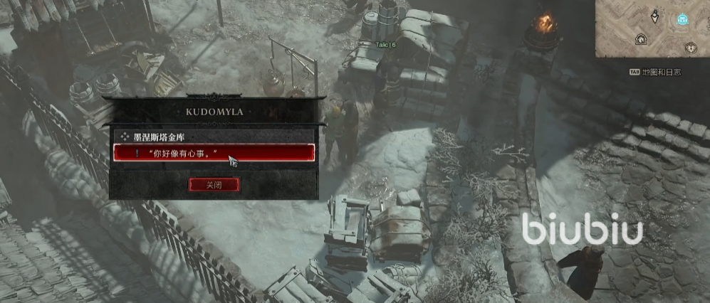 我们首先需要来到主城基奥瓦沙,找到KUDOMYLA,和他对话后,我们就能接到“墨涅斯塔金库”这个支线任务了,根据人物的提示,我们需要在恶风峭壁找到僧侣博赞。