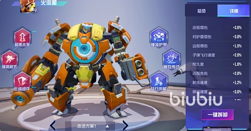 火流星,这台机甲的属性可以说是接近完美的一台机甲,别小看这滚来滚去的球,他近战伤害高的变态,变成球形可以进攻也可以逃离,同时还可以冲上高楼,还有高伤害的灼烧效果。不过大家还是要注意自己的燃料,一旦燃料用完了,机甲就会失去大量的移动性。