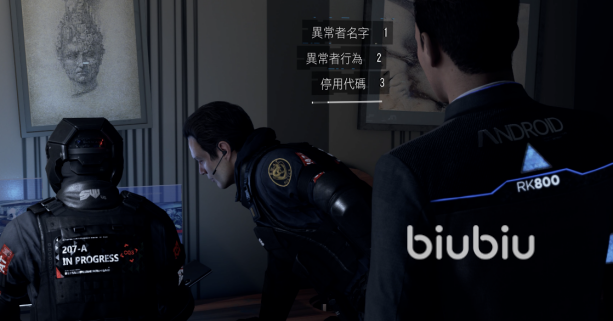 第四章全部都是康纳的剧情,进入游戏后就到储存点了,这里经常有小伙伴说储存失败,是因为网络的原因,需要开加速器解决,推荐使用biubiu加速器,它搭载了国外游戏专线,能完美解决无法储存云同步的问题,还有新用户免费加速3天会员的福利哦。储存成功后,流程是进入吉米酒吧-扫描顾客面部-扫描安德森副队长的面部-与他交谈-请他喝一杯或者去外面等或者把他的酒倒掉,想达成好结局建议都友好选择。
