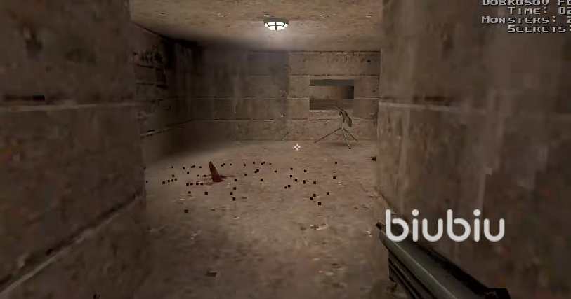 进入关卡之后,我们先射击小怪,在这里可能会有一把霰弹枪,如果没有也没事,用自己的武器也可以过关,把路上遇到的怪物都清理掉。这一关给的火箭很多,所以不用担心弹药不够。清完小怪往前方探索,会获得一个酒瓶,这个道具是每使用一次会回复10点血,但是它有一个小小的缺点,就是当我们使用时,就会天旋地转,如果周围有敌人的话,这种状态还是挺危险的。