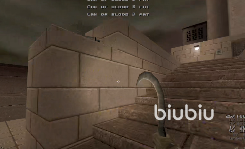 在第一关进入游戏后,我们会看到地面全是老鼠,需要先清理一下这里的老鼠,这里会拿到一把新手枪:hussite handgun。使用手枪清理掉最后一只老鼠,我们钻进下水通道中。一直往前走,使用强力吹风机,把我们吹上去,敲碎挡风板,来到地面上。在这我们先把可以收集的血量拿完,在这个陵墓广场的左侧有一个手炮:hand cannon。