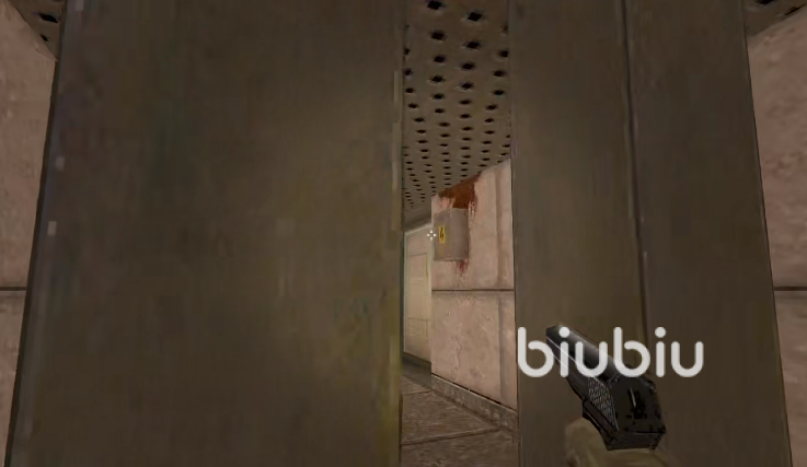 进入游戏,这是一个地下的场景,一开始就会拿到一把火箭发射器,然后我们先沿着楼梯往下走,下来会遇到一个自爆兵,绕开他就好,因为这一关的子弹数量不是很多,要控制着使用。在这里按下开关,打开上层的大门。
