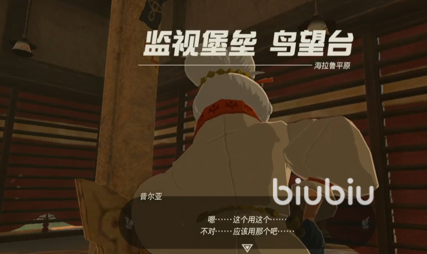 对话完之后就可以去找普尔亚了,她的位置就在监视堡垒里面最高的莲花塔旁边的建筑物里,走近之后就会触发一段剧情,大致意思就是普尔亚见到林克很惊讶,问林克为什么断了一只手,同时也像玩家讲述了前作之后的发生的事情。塞尔达和林克去海拉鲁城堡地下探索,发现了一具木乃伊,之后塞尔达就失踪了,从那时海拉鲁城堡就漂浮到了天空上,整个海拉鲁大陆都发生了混乱,也讲述了林克发生的事情,也就是王国之泪的开篇。