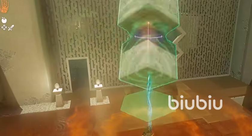 进去之后进左边第一个小房间,房间里有一块十字形的石头,墙上还有一个十字形的洞,用技能究极手抓取十字形石头。从十字形的洞里移到大厅,可以看到正前方是没有路的,把十字形石头放到中间,就搭好了一座桥。如果想要畅通游戏的话,推荐大家使用biubiu加速器,可以有效的降低延迟,而且新人注册免费送三天会员,大家可以前去下载一个。