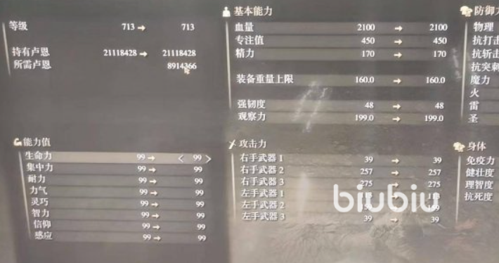 并且我们也可以通过游戏中的人物属性,来判断在这款游戏中是否有等级上限,首先每个职业是有8个属性的,每一个属性玩家最高是可以分配99点,那么根据8个属性就可以知道一共需要792点属性点,这个时候我们再用792减去初始属性就可以得到满级为713级的结论了。