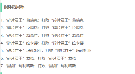 关于银杯结局杯的达成方式包括以下这7个: