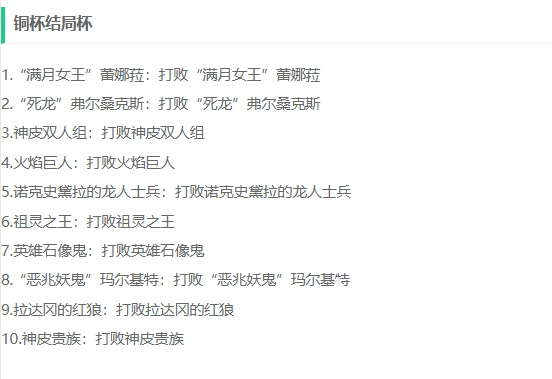 而铜杯的结局杯达成方法则一共有以下的10个: