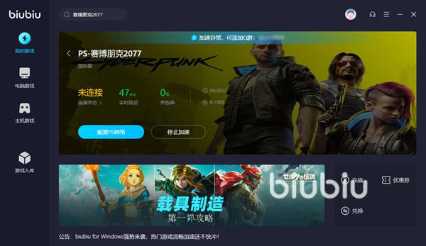 如果你还在纠结赛博朋克2077卡顿怎么办这个问题,不妨尝试一下今天小编向大家推荐的biubiu加速器。通过出色的网游加速服务以及强大的实用功能,相信能够给大家在体验游戏的过程中带来诸多帮助。