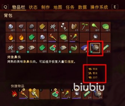 游戏中玩家初始的背包只可以装载30个物品,部分的物品是可以叠加的,但是有的是无法叠加的,这个时候可以将一些不必要的材料进行丢弃或者在建造箱子里来储存。需要注意在游戏中,玩家是有生命值存在的,当生命值归零的时候角色就直接死亡了,所以在体验游戏的时候要注意自己的生命值情况,可以使用各种食物来补充角色的生命值,具体的数值可以将鼠标移到物品上就可以直接查看了。