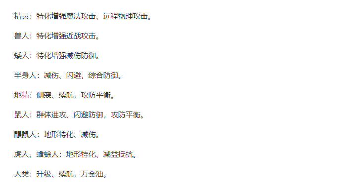 游戏里面,虽然有种族的概念,但是那基本就是外观的差异,真正导致有实际性不同的就是上面说到的派系,他给了玩家角色在肉体以及心灵特性上面的不同,有的善于魔法攻击,有的比较适合近战攻击,当然也有的就纯属于辅助选项了,小编都一一列了出来,玩家们可以仔细对比。