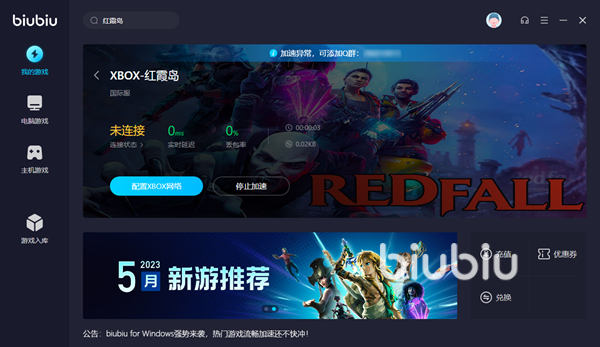 随后我们回到我的游戏列表中,找到刚刚添加的红霞岛点击加速按钮即可畅享流畅的游戏加速效果,这款游戏目前没有区服的限制,所以支持一键加速。通过智能的加速模式系统会根据当前游玩设备的连接和网络情况自动检测并且选择线路和节点,不需要自己动手。不过如果大家是使用Xbox游玩的话,还是需要进行一些网络配置的,万幸的是在biubiu中就带有设置的教程,不用自己去网上寻找了。而且如果大家出现了加速异常的情况,也可以联系客服或者是加群来寻求帮助,还是十分贴心的。
