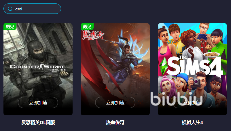 可能有些玩家会好奇,为什么小编极力推荐它,而不是其他的工具,要知道在现在的市面上,能主打针对游戏进行加速的工具可不多,而它就是其中之一,同时里面涉及的游戏种类也是十分丰富,像csol就是其中之一,并且小伙伴在安装成功以后,也就仅仅是去搜索一下就能够看到,之后再次点击就能够进入里面来为游戏开启加速,如此也不用在顾虑会存在掉线的情况,当然了这么方面的工具,小编也是把链接给大家留在了上面。