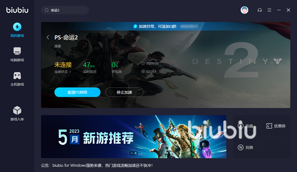 关于命运2卡顿解决办法今天就介绍到这里,Biubiu的实用功能不止于此,像命运2这款的海外免费网游有很多,但是也有不少在Steam平台隐藏起来了,我们没有办法正常入库和游玩。Biubiu为广大玩家提供了免费游戏入库的功能,选择对应的游戏作品重新启动steam就可以一键入库啦,十分方便。