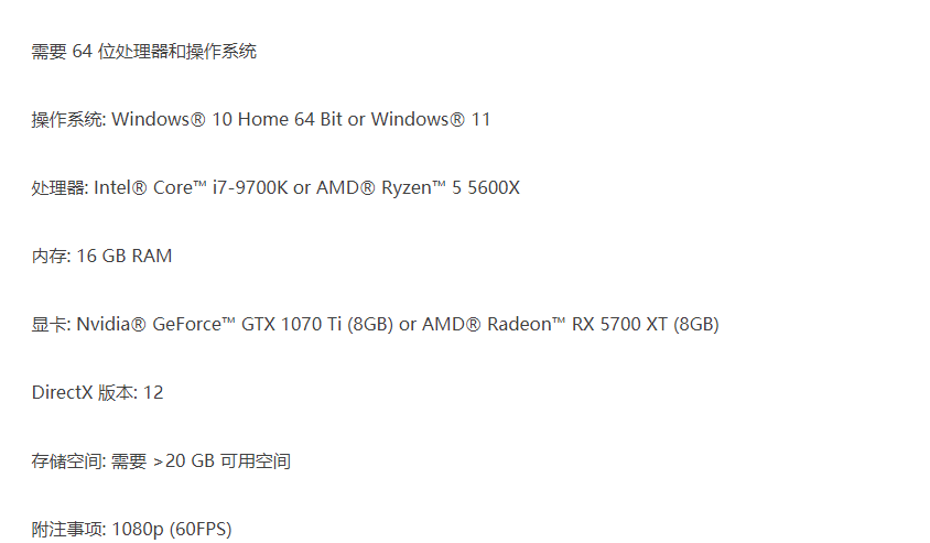 当然官方是有着两个推荐搭配的,先来看下标准版本。可以看到处理器还有显卡,其实还好,不算差档次但也不是贵的那一批,基本上都能够满足。如果说实在是无法达标,那么稍微差点使用最低版本也是可以的,各方面硬件要求可以低一个档位,就是游戏实操的时候体验感差一点。