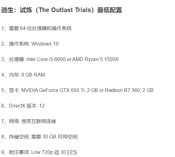 逃生试炼配置要求是什么 逃生试炼电脑配置要求推荐
