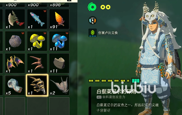 最后的精灵头帽需要换两轮。首先我们和他交换获得白鬓莱尼尔的碎角,这件抓昂布可以免于被霍拉布林发现。接着换2个古栗欧克的翅膀,它们可以装到武器或者箭上,即可让其乘风飞远。再换一个莱尼尔的面罩,可以躲避莱尼尔。再然后3个古栗欧克的雷电犄角,可以装备在武器上,释放积蓄的电力,大幅增加攻击力,也可以制作成药物。