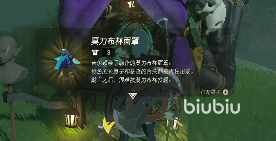 获取后和村子里的吉尔顿对话,选择梦想。就会触发新的任务柯尔天的下落,我们使用滑翔翼飞到对岸色彩鲜艳的售货摊,和柯尔天对话,他会让我们帮他找魔犹伊的遗失物,会给我们相称的宝物精灵衣进行交换。需要注意的是这个家伙只会在夜晚出现,白天是找不到他的。并且如果我们和他开始交换的话,他吃下这些遗失物后,可以感应到这些物品的下落,如果我们不知道在哪里可以获得,也可以让他提供下信息的。之后就是无聊的找遗失物的环节了,我们就一笔带过。