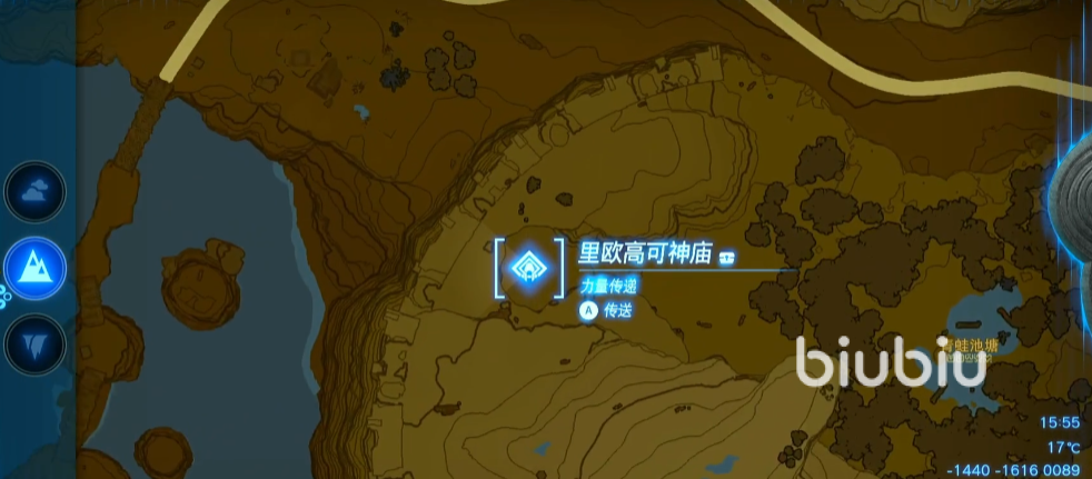 我们先来看看里欧高可神庙的位置在哪里。在探索之前,我们肯定是需要一款合格的加速器的,biubiu加速器目前支持多平台游戏的加速,而且新人注册还免费送三天会员。当加速成功进入游戏后,打开地图找到海拉鲁平原,在它的西南方向有一个精灵森林和青蛙池塘,就在青蛙池塘西侧的一个山坳处,也可以说是在初始台地的附近,那里就是神庙的所在。