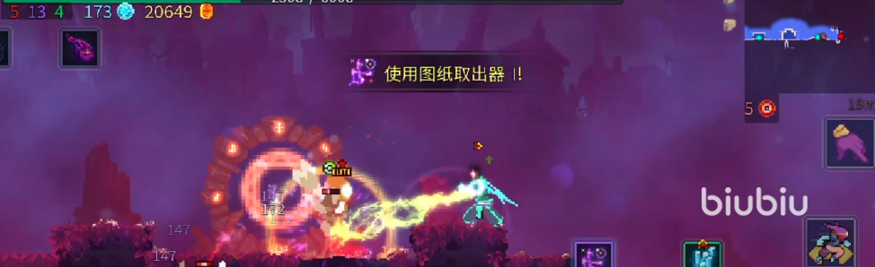我们可以用猎人手雷捕获他,然后尽量使用远程武器,和它保持距离,在虫群僵尸即将死亡时,捕获它,使用图纸取出器就可以获得铲子的设计图了,如果大家在这里反复都捡不起来图纸,应该是网络卡了,可以使用biubiu加速器加速一下《死亡细胞》,加速后即可拾取兔子,目前新人注册可以免费体验三天会员。