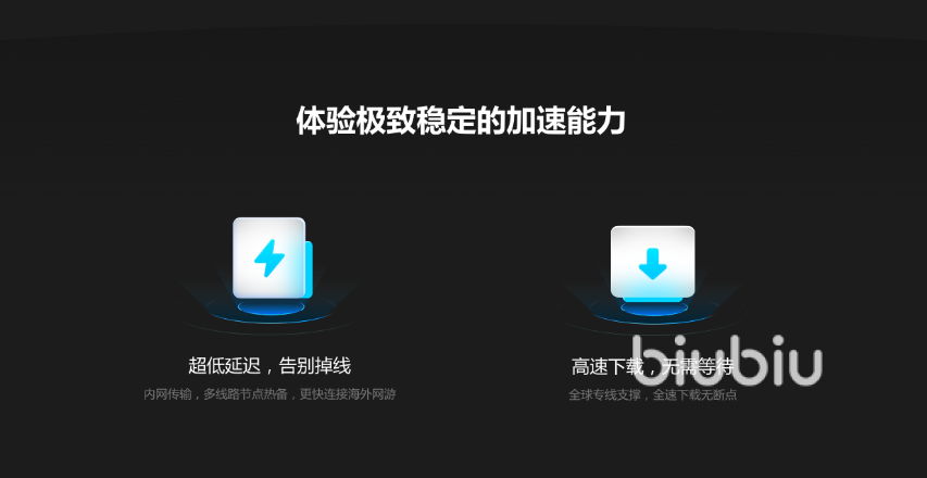 biubiu现在对于新用户推出了首次下载即送3天的会员免费加速活动,以及不定期的还会开展很多游戏的限免活动,想要了解这部分内容的玩家可以持续关注biubiu官网的相关资讯哦。biubiu加速器独有的电竞级别专线节点,还能让玩家轻松体验到游戏加速效果,实在是非常贴心。