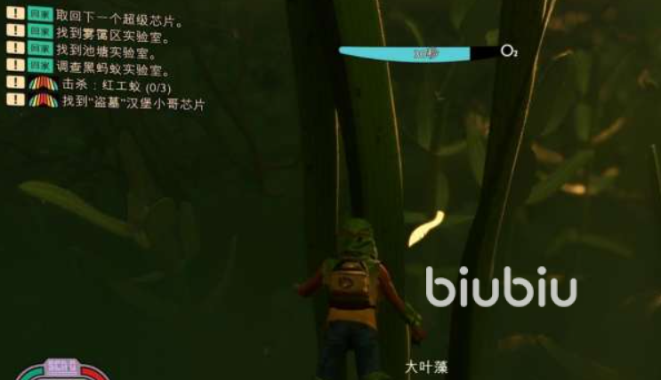 然后鳃管需要在水下收集大叶藻这个材料解锁制作鳃管,最后我们需要在制作一个泡泡头盔,这个头盔需要获取到沉没的骨头这个材料才可以解锁配方,解锁之后我们将泡泡头盔装备上,可以在水下活动时间提升到160秒,大幅度提高在水下逗留的时间。