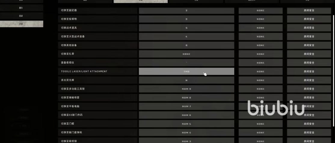 游戏中默认的1/2/3/4/5分别为切换步枪、手枪、投掷物、战术道具和大型战术道具,但是由于大型战术道具的使用场景比较多,所以可以更改为4,手指更容易触碰到。