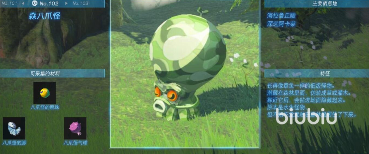 下面给大家介绍的是八爪怪,它们非常的有趣,水八爪怪会在雨天漂浮起来,森、雪八爪怪会伪装成周遭的植物,岩八爪怪可以帮我们的武器除锈,宝八爪怪会伪装成宝箱,击败它也能获取各种各样的卢比,天空八爪怪是红色的警戒单位。