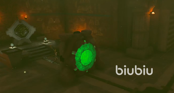 当然想要使用的前提是先解锁一楼的开关,在一楼的右上角方向,有一个石块将门挡住了。我们将石块拿走,然后点亮一下露珠,里面就是第一层的开关,朝中间的开关射一箭,就会激活了。