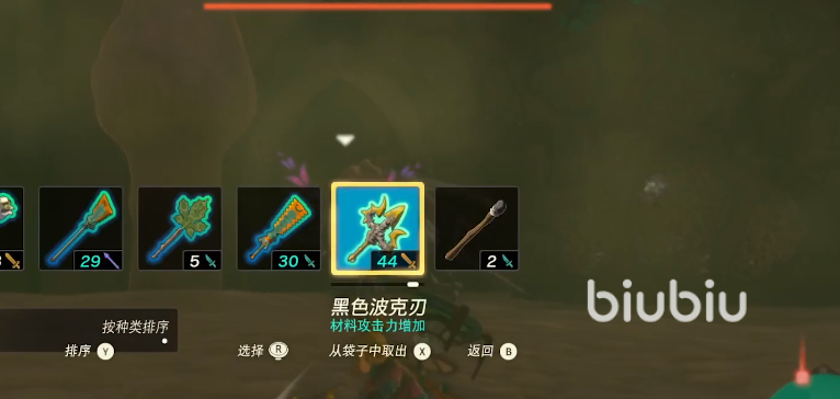 游戏中选择方向键,就可以到武器选择界面了,在这里左右移动,切换想要使用的武器。按下R键,就可以更换。按下X键,可以从袋子中取出来。在使用武器时,玩家需要注意自己的武器耐久度。每种武器都有其耐久度,使用一段时间后就会损坏。