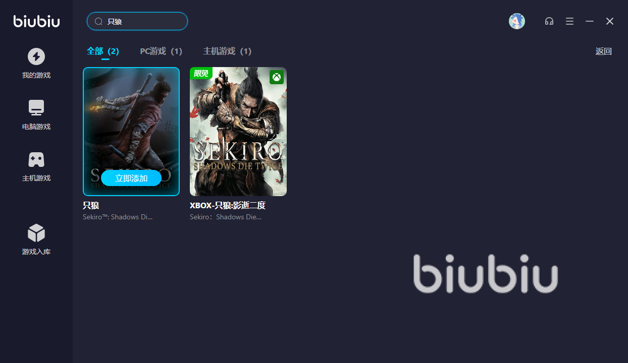 在只狼游戏的小伙伴们下载biubiu之后,小伙伴们只需要点开软件添加只狼游戏就可以了。游戏的搜索方式是在biubiu的搜索栏直接输入,就可以找到只狼游戏。后续只狼游戏的小伙伴们只要在想玩只狼游戏的时候再次打开biubiu就可以了,十分的简单方便,相信对于只狼游戏的小伙伴们来说很好上手。