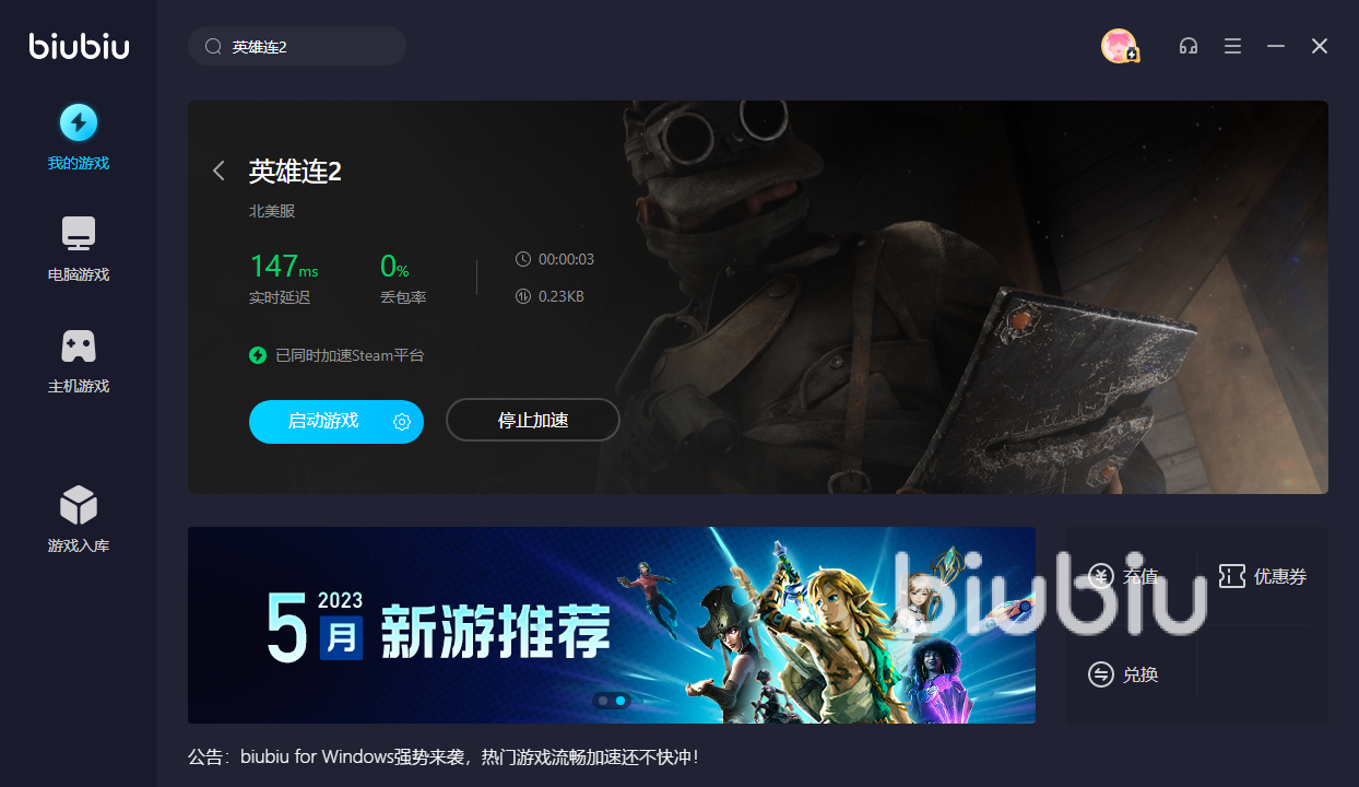 2023年05月23日 19:32 来源:禁锢信妙蛙花很多玩家在国内去体验海外服游戏的时候经常会遇到卡顿和延迟的情况,这其实就是因为服务器距离太远导致的,下面小编就和大家介绍下英雄连2卡顿怎么办,作为一款战争题材为背景的游戏,如果画面一直都是加载不出来,或者是卡顿的话,是非常影响大家体验的,所以这个时候小编建议大家可以去选择使用biubiu加速器来解决这个问题,它能让用户的游戏体验变得更加丝滑顺畅,感兴趣的就一起来接着往下看吧。