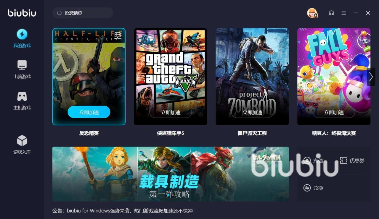 以上就是反恐精英卡顿怎么解决,有了这个应用的协助,当你组队进行枪战时,不会再因为卡顿,而被队友吐槽了。除了可以给电脑游戏加速,biubiu加速器还支持给一些主机游戏加速,并且推出了限免优惠,大家可以先体验,再使用。如果你觉得这个产品不错,那么可以下载安装好,去亲自体验一下。