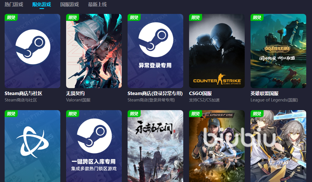 但是当各位使用了biubiu加速器之后,不仅可以享受到专业的网络优化,大家还可以在游戏库中随时获取大量正在参与限免活动的作品。玩家可以通过参加限免活动的方式,来针对喜欢的其他游戏开启加速,这样有助于各位了解不同的游戏乐趣。